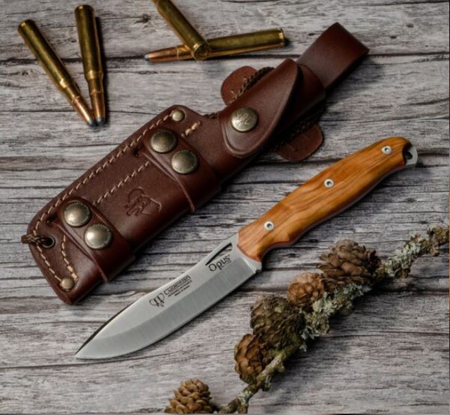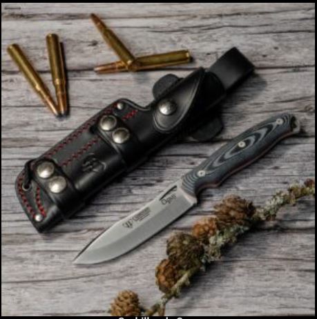 Schlankes, feststehendes Messer in verschiedenen Ausführungen. Der Griff ist in unterschiedlichen Hölzern erhältlich. Es gibt ebenfalls eine Ausführung mit Micarta Griffschalen. Die Lederscheiden sind sehr ansprechend gestaltet und auf Wunsch mit Zusatzoptionen wie Schleifstein oder Feuerstahl erhältlich. Durch die zusätzlichen Schlaufen der Lederscheide ist das Tragen am Gürtel horizontal und vertikal möglich.