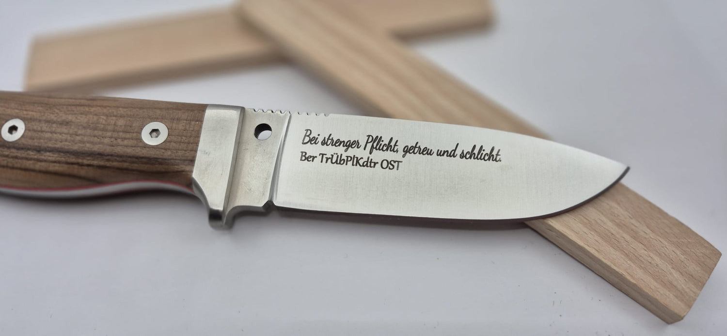 Zusätzlich bieten wir für alle unsere Messer Gravuren der Klingen an. Auch dazu können Sie uns gerne ansprechen.